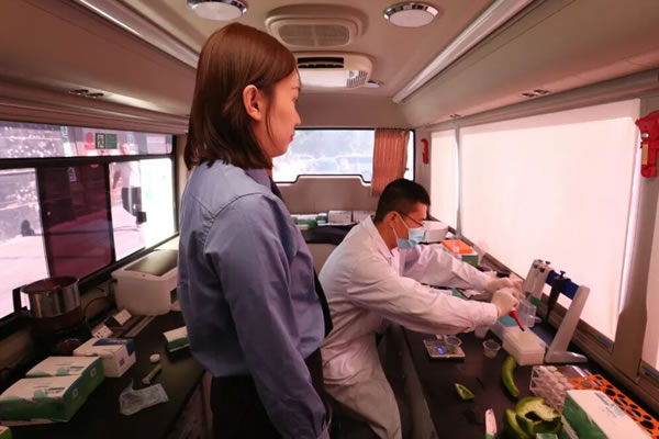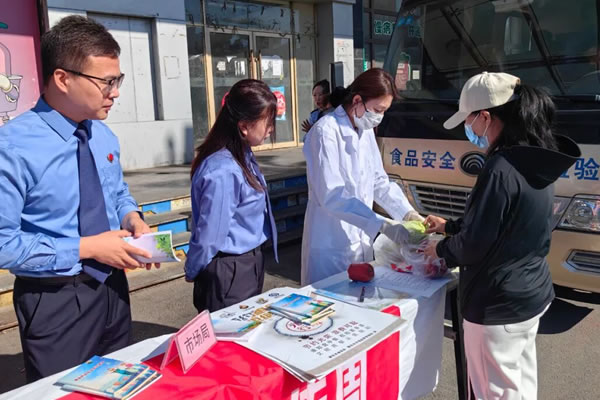 在快速检测服务环节,市场监管人员现场对消费者刚购买的蔬菜、水果等农产品进行农药残留等项目免费快检,让消费者"零距离"感受食品安全保障,增强了消费信心。