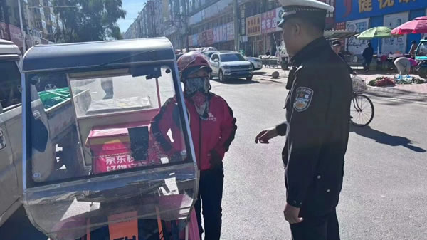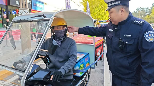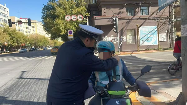行动中,民辅警在城区电动车、摩托车通行集中路段,对摩托车、电动车逐辆进行检查,对未正确佩戴安全头盔的骑乘人员,现场讲解正确佩戴头盔的方法及佩戴头盔的重要性和必要性。对未佩戴安全头盔的骑乘人员进行教育、警告。并当面宣讲交通安全法律法规等安全知识,详细剖析驾乘电动车、摩托车不佩戴安全头盔的严重危害和后果。尤其针对外卖、快递等配送人员,民辅警在街头逐一检查车辆运行手续和安全性能、头盔是否符合国家标准等情况,明确要求快递配送人员必须发挥重点行业示范引领作用,时刻戴好安全头盔,遵守交通法规,做好交通安全的带头人。
