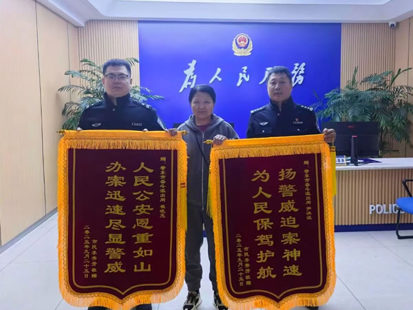 为表达对奋斗派出所民警、辅警的感激之情, 10 月 10 日,李女士特意制作了两面写有 “人民公安恩重如山,办案迅速尽显警威”“扬警威破案神速,为人民保驾护航” 的锦旗,专程送到奋斗派出所,亲手交到民警尹洪波和辅警崔晓亮手中,用最朴实的方式向守护群众财产安全的人民警察致敬。